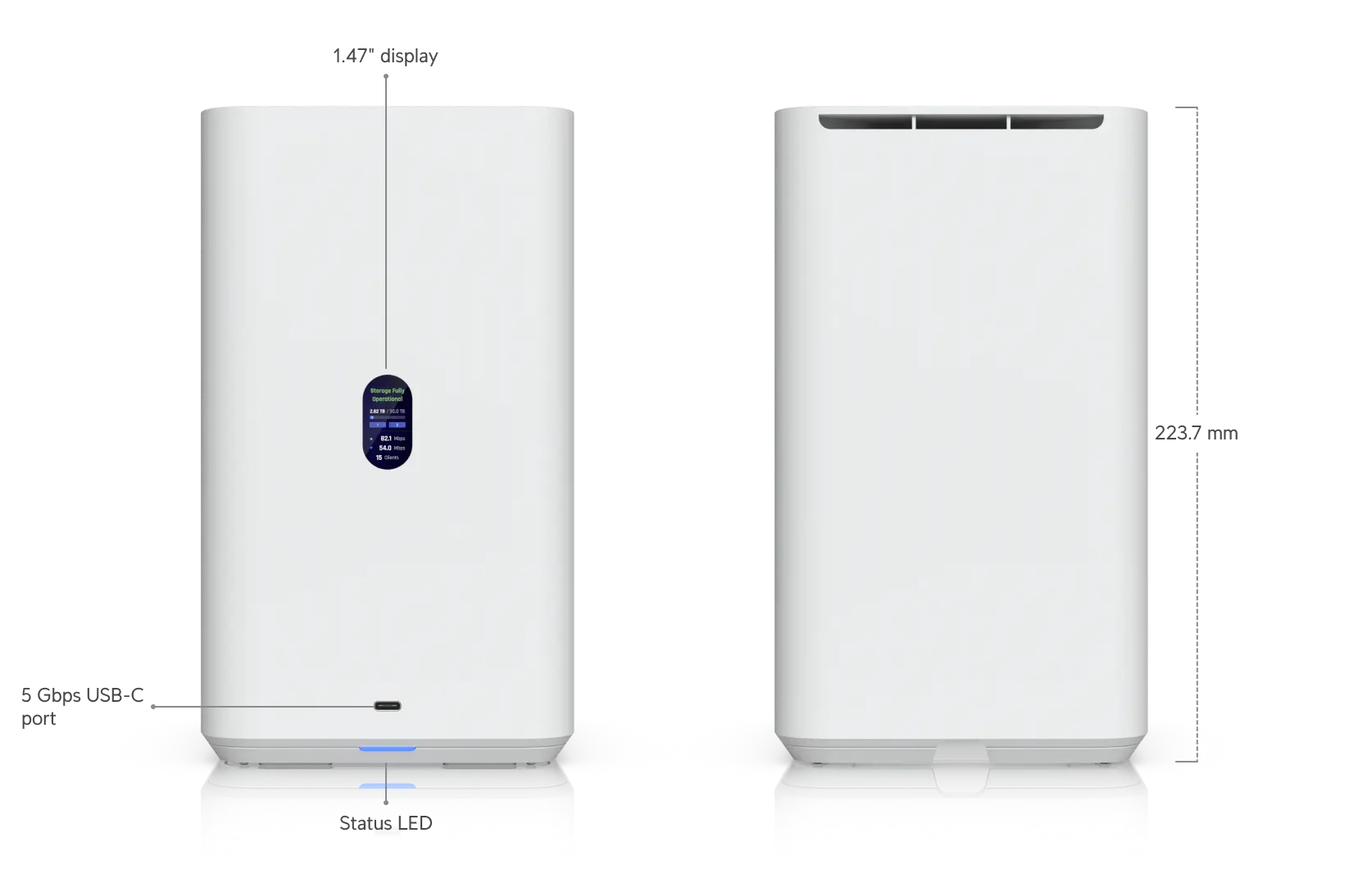 Compact Cloud Gateway with 30+ UniFi device / 300+ client support, 1 Gbps IPS routing, and multi-WAN load balancing.