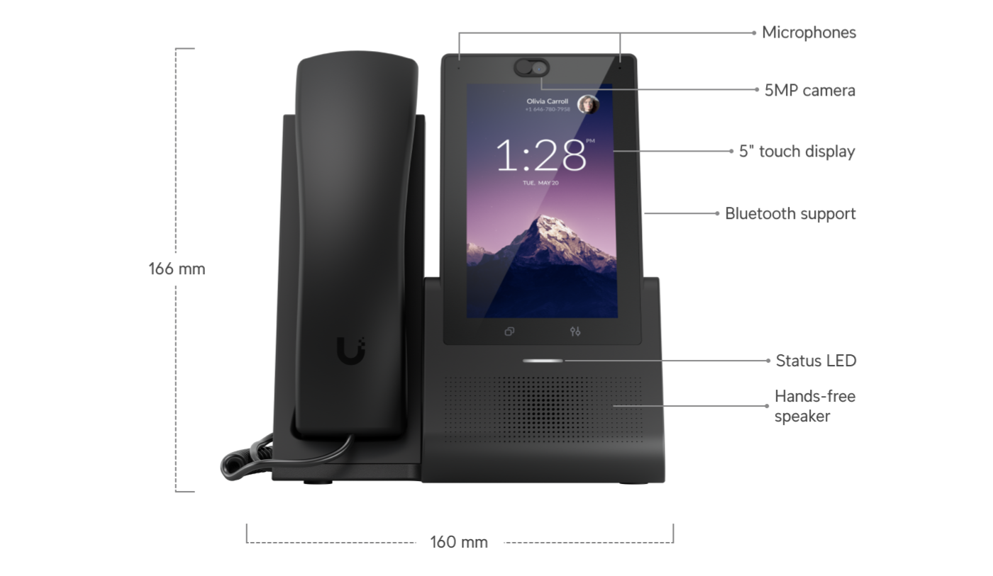 Next-generation desktop smartphone for UniFi Talk, featuring a 5" touch display and seamless integration with UniFi applications.